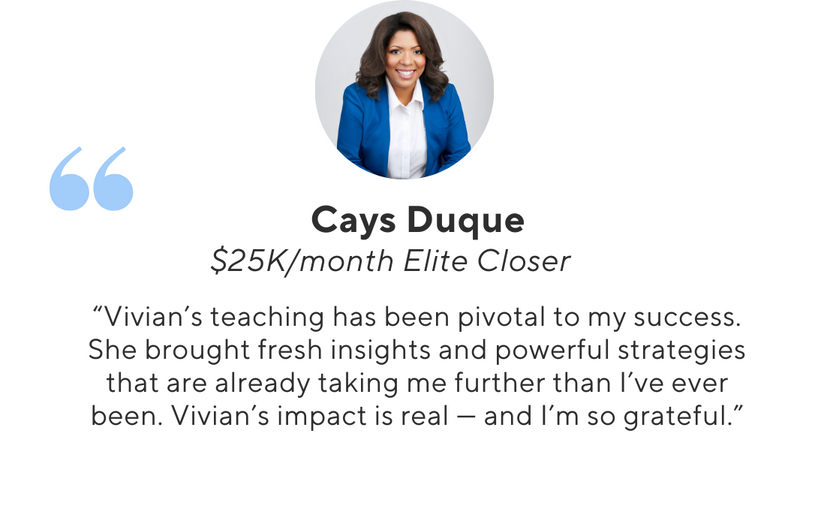 A devoted wife, mother, CEO, and internationally recognized speaker, Vivian is known today as The Sales Queen™, the bold voice redefining what it means to succeed in sales and business.